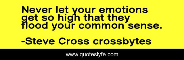 This page presents the quote "Never let your emotions get so high that they flood your common sense.". Author of this quote is Steve Cross crossbytes. This quote is about common-sense, emotions,.