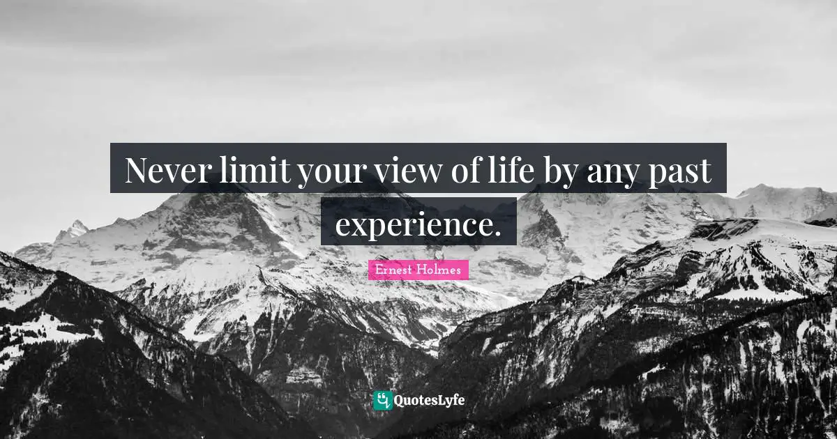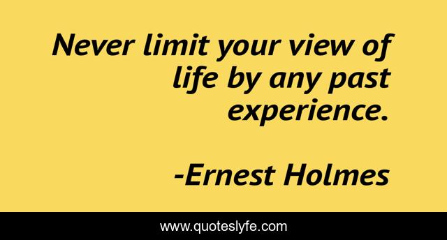 This page presents the quote "Never limit your view of life by any past experience.". Author of this quote is Ernest Holmes. This quote is about enthusiasm, inspirational,.