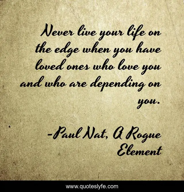 This page presents the quote "Never live your life on the edge when you have loved ones who love you and who are depending on you.". Author of this quote is Paul Nat, A Rogue Element. This quote is about enthusiasm, life, inspirational, value,.