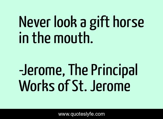 "Jerome, The Principal Works of St. Jerome Quotes." Quoteslyfe.com, 2025. Sat. 06 Dec. 2025. <https://www.quoteslyfe.com/quote/Never-look-a-gift-horse-in-the-251098>.