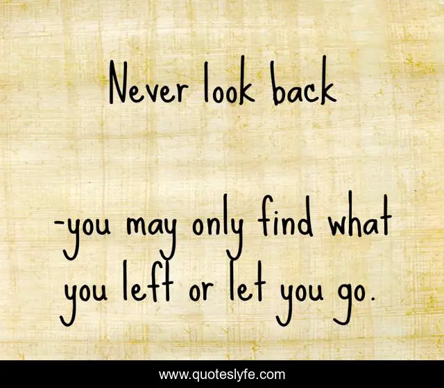 "you may only find what you left or let you go. Quotes." Quoteslyfe.com, 2025. Mon. 08 Dec. 2025. <https://www.quoteslyfe.com/quote/Never-look-back-218163>.