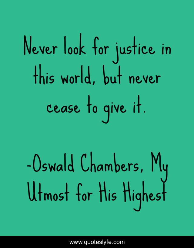 "Oswald Chambers, My Utmost for His Highest Quotes." Quoteslyfe.com, 2025. Fri. 05 Dec. 2025. <https://www.quoteslyfe.com/quote/Never-look-for-justice-in-this-world-176446>.