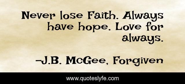 "J.B. McGee, Forgiven Quotes." Quoteslyfe.com, 2025. Tue. 09 Dec. 2025. <https://www.quoteslyfe.com/quote/Never-lose-Faith-Always-have-hope-Love-122311>.