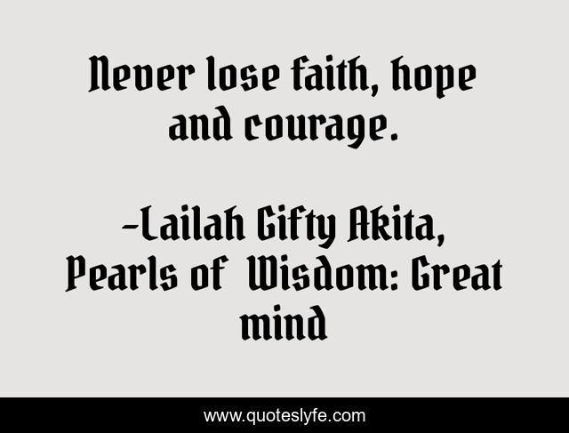 "Lailah Gifty Akita, Pearls of Wisdom: Great mind Quotes." Quoteslyfe.com, 2025. Sat. 06 Dec. 2025. <https://www.quoteslyfe.com/quote/Never-lose-faith-hope-and-courage-91808>.