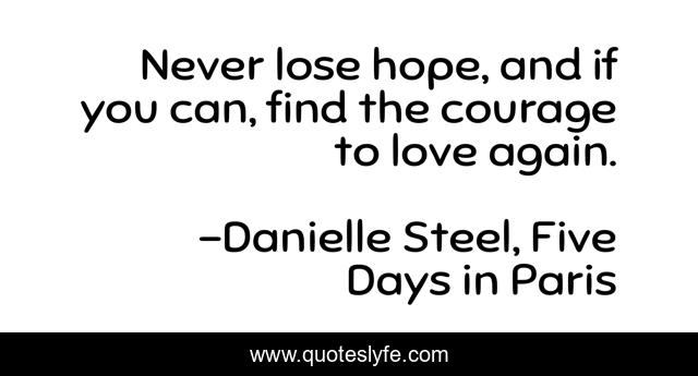 This page presents the quote "Never lose hope, and if you can, find the courage to love again.". Author of this quote is Danielle Steel, Five Days in Paris. This quote is about enthusiasm, inspirational,.