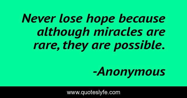 This page presents the quote "Never lose hope because although miracles are rare, they are possible.". Author of this quote is Anonymous. This quote is about miracles, enthusiasm, inspirational,.