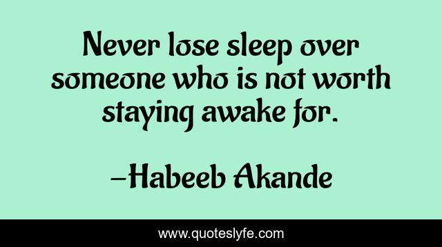 This page presents the quote "Never lose sleep over someone who is not worth staying awake for.". Author of this quote is Habeeb Akande. This quote is about relationships, move-on, sleep, worrying,.