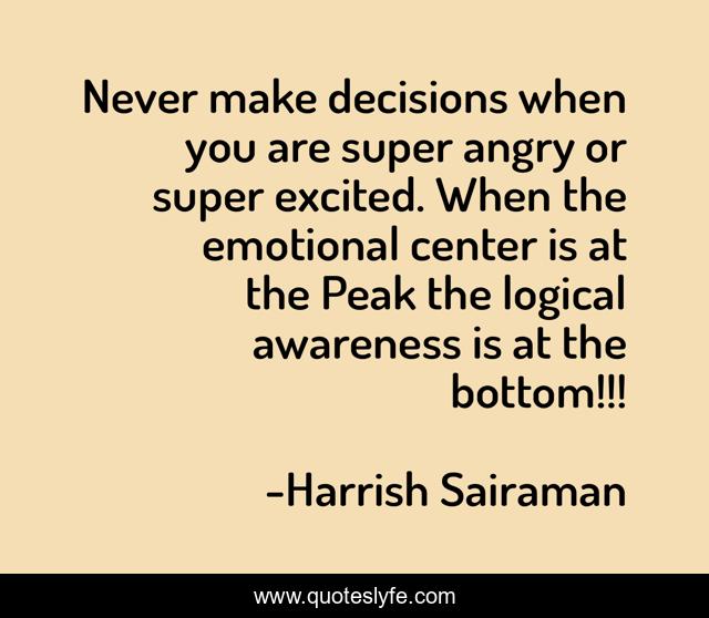 "Harrish Sairaman Quotes." Quoteslyfe.com, 2025. Sat. 06 Dec. 2025. <https://www.quoteslyfe.com/quote/Never-make-decisions-when-you-are-super-211553>.