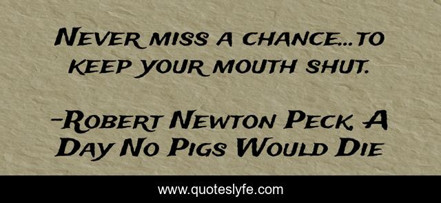 This page presents the quote "Never miss a chance...to keep your mouth shut.". Author of this quote is Robert Newton Peck, A Day No Pigs Would Die. This quote is about advice, life,.