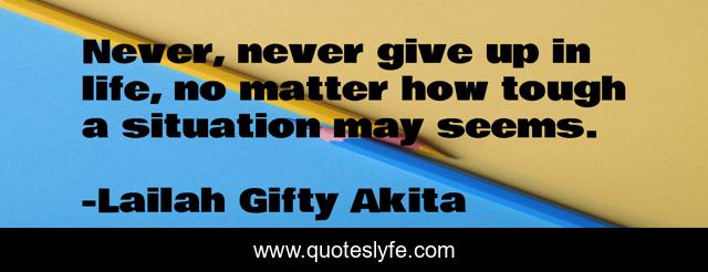 This page presents the quote "Never, never give up in life, no matter how tough a situation may seems.". Author of this quote is Lailah Gifty Akita. This quote is about life, inspirational-living, never-give-up,.