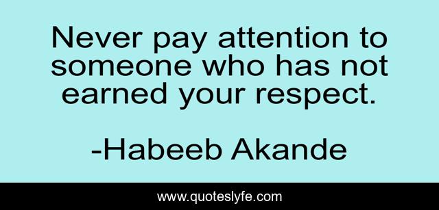 This page presents the quote "Never pay attention to someone who has not earned your respect.". Author of this quote is Habeeb Akande. This quote is about respect, advice, reputation,.