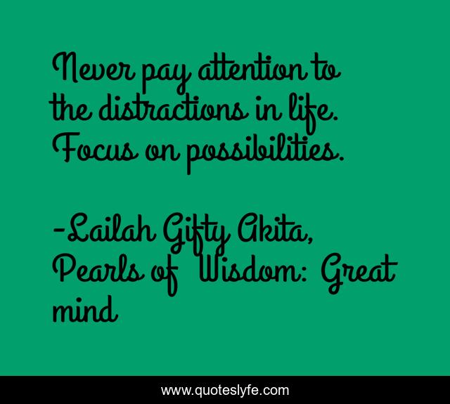 "Lailah Gifty Akita, Pearls of Wisdom: Great mind Quotes." Quoteslyfe.com, 2025. Sun. 07 Dec. 2025. <https://www.quoteslyfe.com/quote/Never-pay-attention-to-the-distractions-in-84224>.