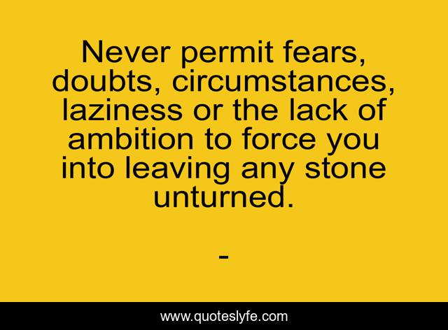 Never permit fears, doubts, circumstances, laziness or the lack of ambition to force you into leaving any stone unturned.
