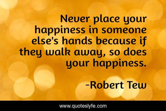 This page presents the quote "Never place your happiness in someone else's hands because if they walk away, so does your happiness.". Author of this quote is Robert Tew. This quote is about happiness, relationship, wisdom,.