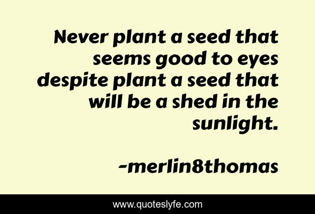 This page presents the quote "Never plant a seed that seems good to eyes despite plant a seed that will be a shed in the sunlight.". Author of this quote is merlin8thomas. This quote is about shed, good, eyes, sunlight, plant, seed,.