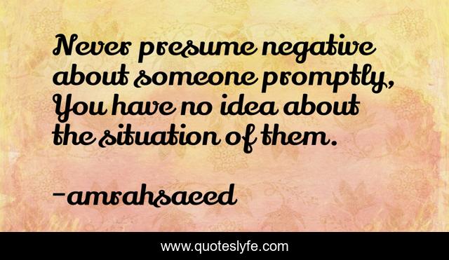 This page presents the quote "Never presume negative about someone promptly, You have no idea about the situation of them.". Author of this quote is amrahsaeed. .