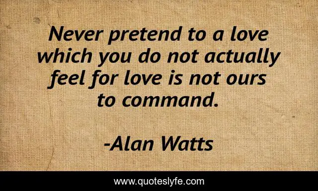 This page presents the quote "Never pretend to a love which you do not actually feel for love is not ours to command.". Author of this quote is Alan Watts. .
