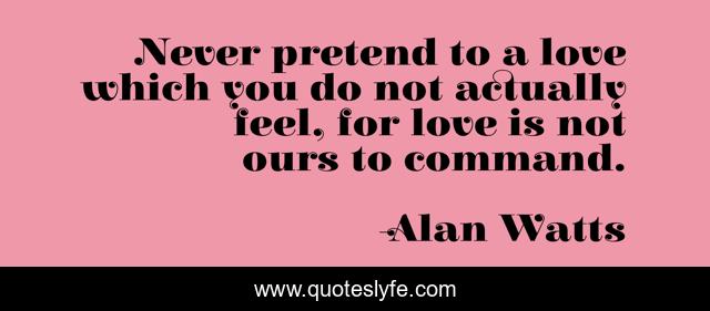 This page presents the quote "Never pretend to a love which you do not actually feel, for love is not ours to command.". Author of this quote is Alan Watts. This quote is about feel, love is,.