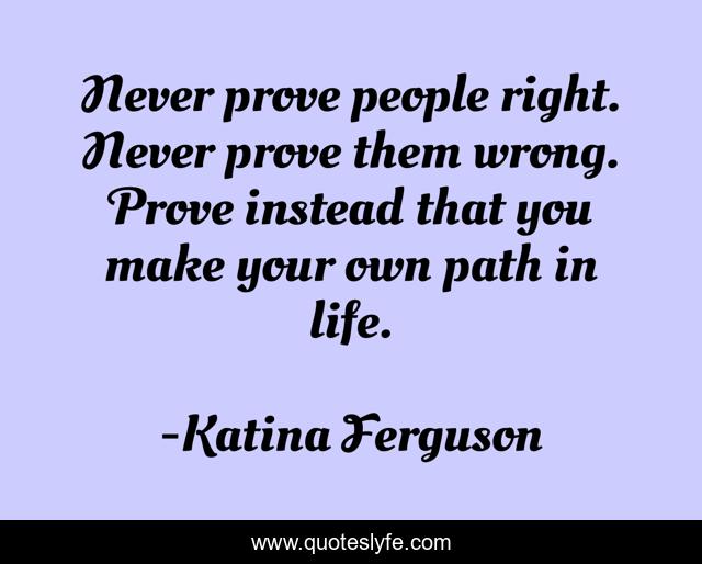 This page presents the quote "Never prove people right. Never prove them wrong. Prove instead that you make your own path in life.". Author of this quote is Katina Ferguson. This quote is about positive, confidence, motivational, optimistic,.