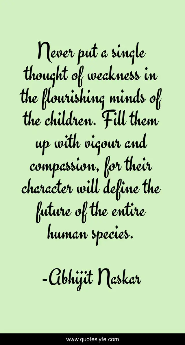 Never put a single thought of weakness in the flourishing minds of the children. Fill them up with vigour and compassion, for their character will define the future of the entire human species.