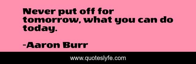 This page presents the quote "Never put off for tomorrow, what you can do today.". Author of this quote is Aaron Burr. This quote is about true, procrastination,.