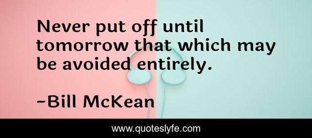 "Bill McKean Quotes." Quoteslyfe.com, 2025. Sun. 07 Dec. 2025. <https://www.quoteslyfe.com/quote/Never-put-off-until-tomorrow-that-which-147438>.