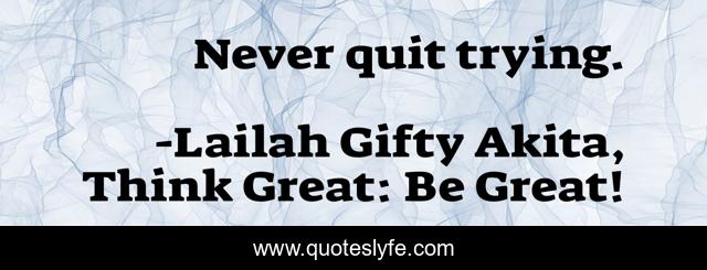 "Lailah Gifty Akita, Think Great: Be Great! Quotes." Quoteslyfe.com, 2025. Sun. 07 Dec. 2025. <https://www.quoteslyfe.com/quote/Never-quit-trying-34497>.