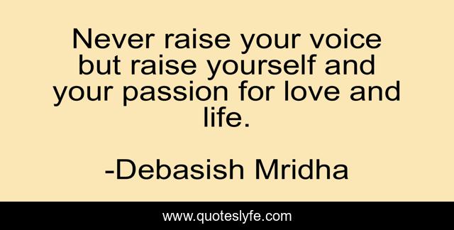 This page presents the quote "Never raise your voice but raise yourself and your passion for love and life.". Author of this quote is Debasish Mridha. This quote is about life, education, love, knowledge, raise, inspirational, intelligence, philosophy, wisdom,.