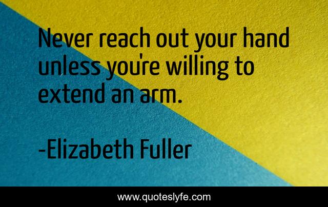 This page presents the quote "Never reach out your hand unless you're willing to extend an arm.". Author of this quote is Elizabeth Fuller. This quote is about helping, people,.