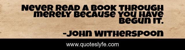 This page presents the quote "Never read a book through merely because you have begun it.". Author of this quote is John Witherspoon. This quote is about books, reading, wisdom,.