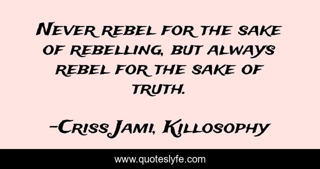 "Criss Jami, Killosophy Quotes." Quoteslyfe.com, 2025. Sun. 07 Dec. 2025. <https://www.quoteslyfe.com/quote/Never-rebel-for-the-sake-of-rebelling-13176>.