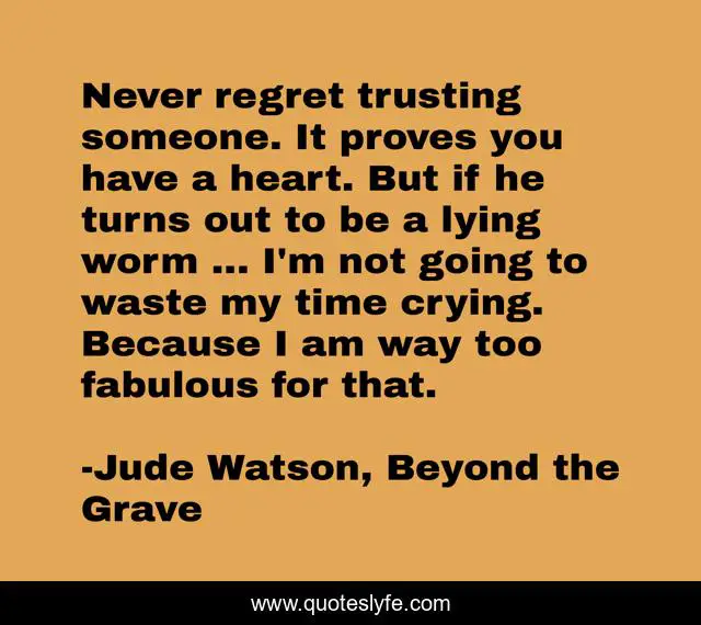 "Jude Watson, Beyond the Grave Quotes." Quoteslyfe.com, 2025. Sun. 07 Dec. 2025. <https://www.quoteslyfe.com/quote/Never-regret-trusting-someone-It-proves-you-202256>.