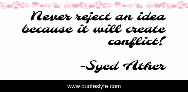 This page presents the quote "Never reject an idea because it will create conflict!". Author of this quote is Syed Ather. This quote is about enthusiasm, conflict, idea, inspirational, reject,.