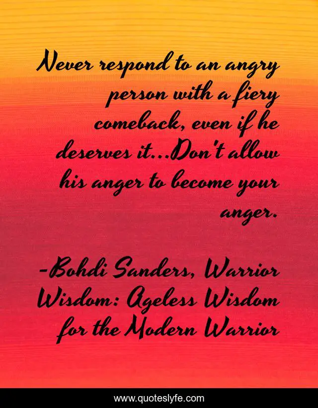 "Bohdi Sanders, Warrior Wisdom: Ageless Wisdom for the Modern Warrior Quotes." Quoteslyfe.com, 2025. Sun. 07 Dec. 2025. <https://www.quoteslyfe.com/quote/Never-respond-to-an-angry-person-with-2408>.