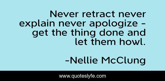 This page presents the quote "Never retract never explain never apologize - get the thing done and let them howl.". Author of this quote is Nellie McClung. .