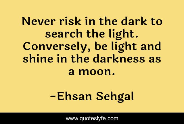 This page presents the quote "Never risk in the dark to search the light. Conversely, be light and shine in the darkness as a moon.". Author of this quote is Ehsan Sehgal. .