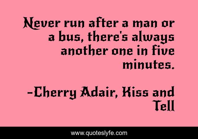 This page presents the quote "Never run after a man or a bus, there's always another one in five minutes.". Author of this quote is Cherry Adair, Kiss and Tell. This quote is about military, humor, romantic-suspense,.