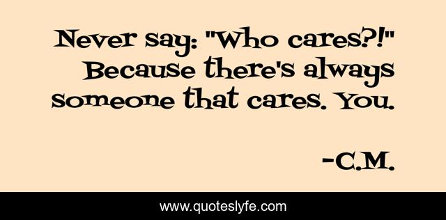This page presents the quote "Never say: "Who cares?!" Because there's always someone that cares. You.". Author of this quote is C.M.. .