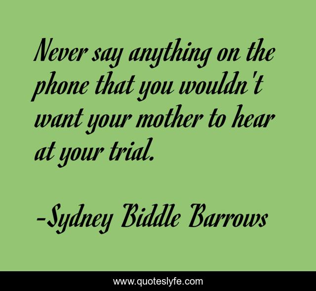 This page presents the quote "Never say anything on the phone that you wouldn't want your mother to hear at your trial.". Author of this quote is Sydney Biddle Barrows. This quote is about positive, confidence,.