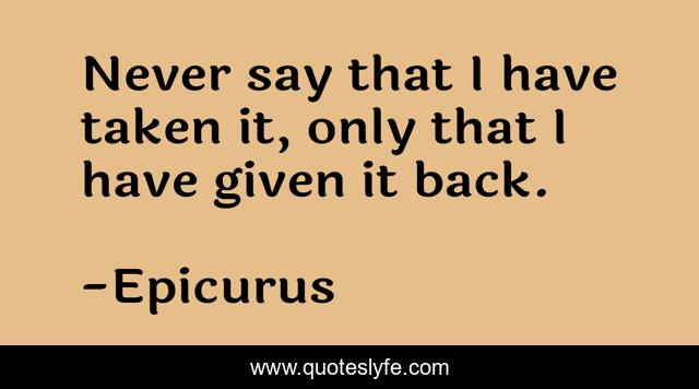 This page presents the quote "Never say that I have taken it, only that I have given it back.". Author of this quote is Epicurus. This quote is about philosophy, stoic,.