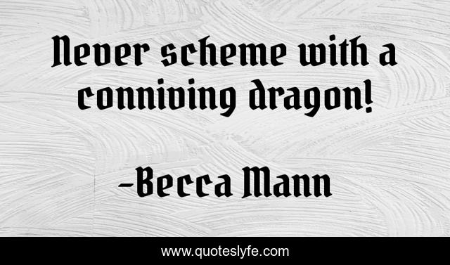 This page presents the quote "Never scheme with a conniving dragon!". Author of this quote is Becca Mann. This quote is about becca-mann, fantasy, scheme, dragon,.