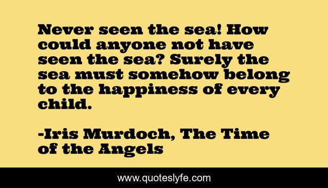 This page presents the quote "Never seen the sea! How could anyone not have seen the sea? Surely the sea must somehow belong to the happiness of every child.". Author of this quote is Iris Murdoch, The Time of the Angels. .