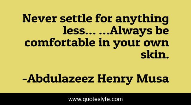 This page presents the quote "Never settle for anything less… …Always be comfortable in your own skin.". Author of this quote is Abdulazeez Henry Musa. .