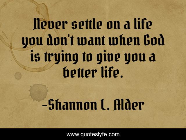 This page presents the quote "Never settle on a life you don't want when God is trying to give you a better life.". Author of this quote is Shannon L. Alder. This quote is about settling, self-love, honest-life, happier, living-authentically, authentic-life, self-respect, giving-up, integrity,.