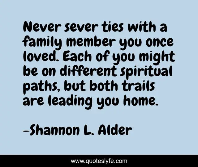 "Shannon L. Alder Quotes." Quoteslyfe.com, 2025. Mon. 08 Dec. 2025. <https://www.quoteslyfe.com/quote/Never-sever-ties-with-a-family-member-117319>.