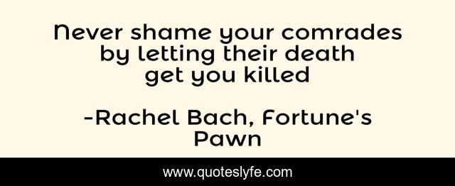 This page presents the quote "Never shame your comrades by letting their death get you killed". Author of this quote is Rachel Bach, Fortune's Pawn. This quote is about perserverance, death, survival, battle, comrades, remembrance, honor,.
