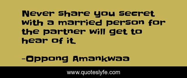 This page presents the quote "Never share you secret with a married person for the partner will get to hear of it.". Author of this quote is Oppong Amankwaa. .