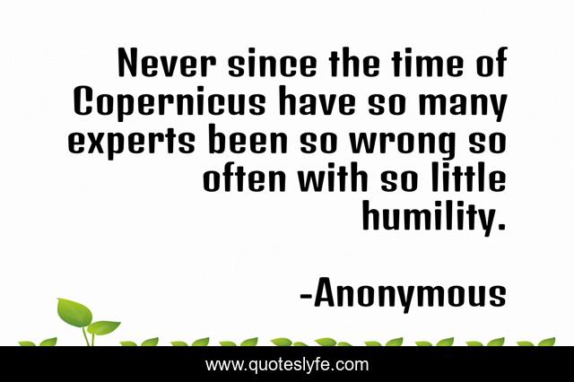 This page presents the quote "Never since the time of Copernicus have so many experts been so wrong so often with so little humility.". Author of this quote is Anonymous. .