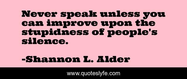 "Shannon L. Alder Quotes." Quoteslyfe.com, 2025. Sat. 06 Dec. 2025. <https://www.quoteslyfe.com/quote/Never-speak-unless-you-can-improve-upon-144209>.