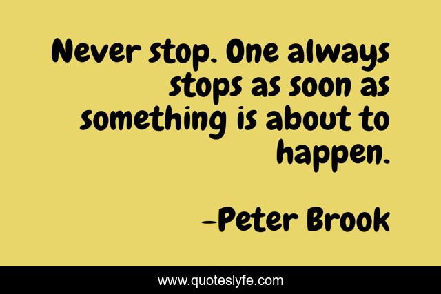 "Peter Brook Quotes." Quoteslyfe.com, 2025. Sun. 07 Dec. 2025. <https://www.quoteslyfe.com/quote/Never-stop-One-always-stops-as-soon-271556>.